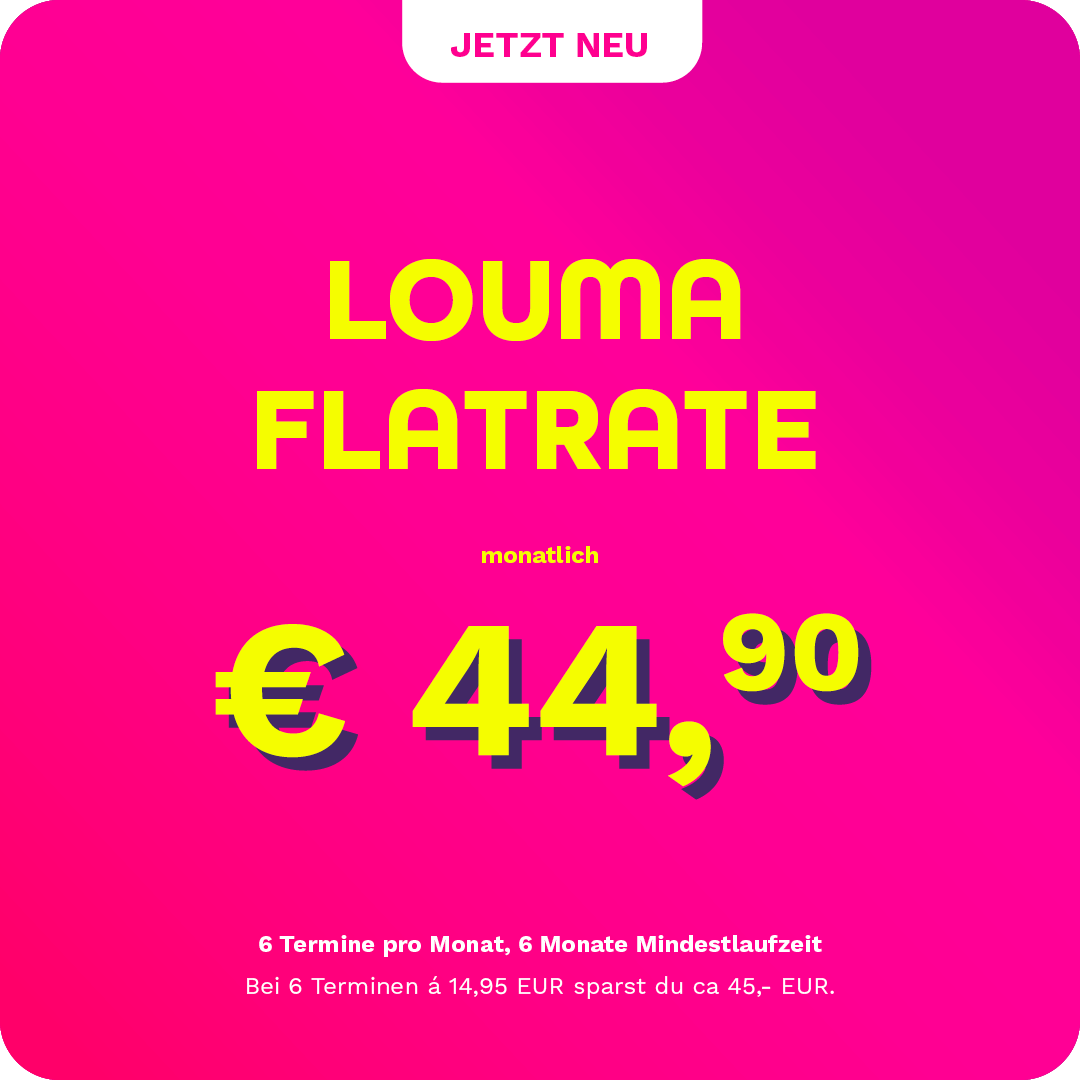 • 6 Termine pro Monat inklusive: Nutze unsere automatisierten Louma-Sessel bis zu 6x im Monat und spare damit über 45,- EUR/mtl.