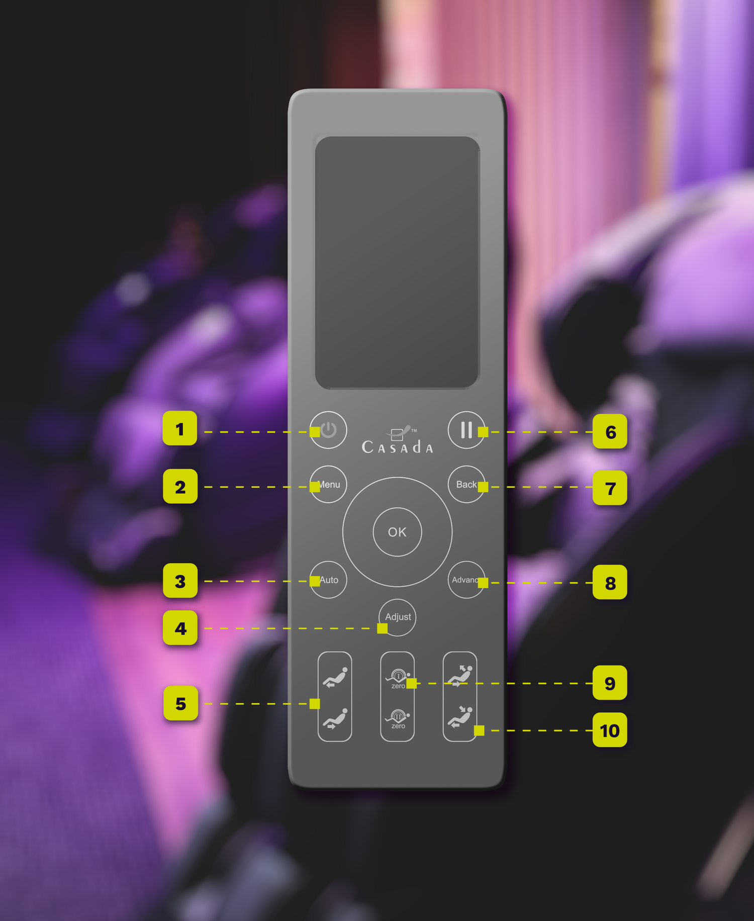 Hast du den Sessel aktiviert, kannst du ihn mit der Fernbedienung oder direkt am Sessel einschalten. Der Sessel ermittelt zuerst deine Größe. Das dauert ca. 10 Sekunden. Anschließend kannst du dein Massage-Programm wählen. Und deine Auszeit beginnt